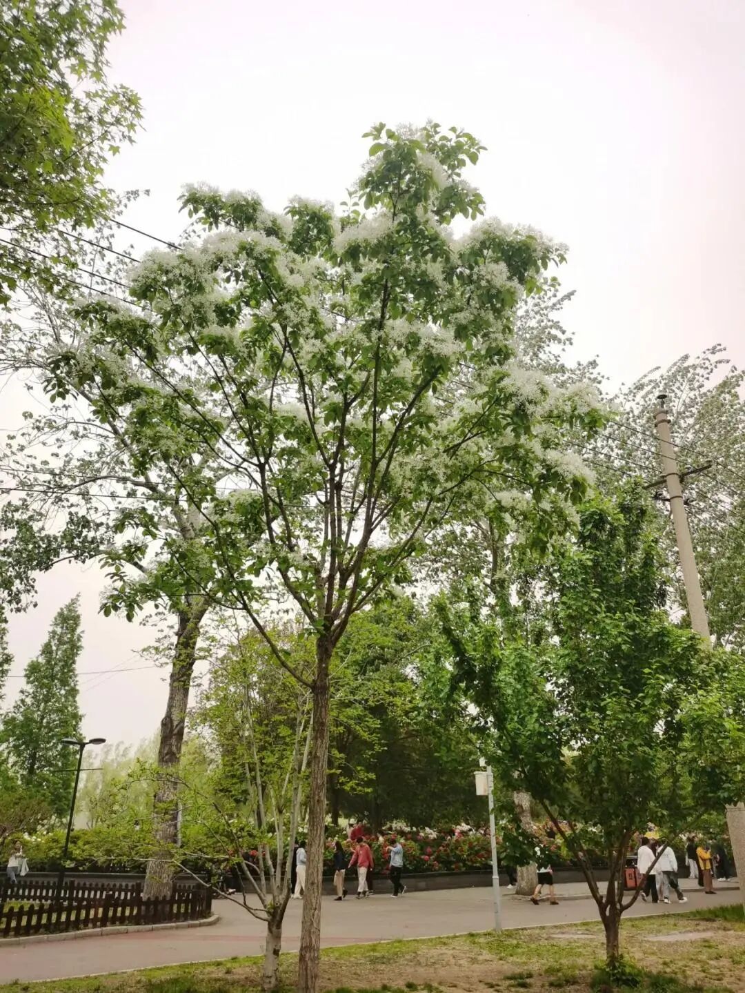 1.牡丹园旁边的这棵流苏树这会儿也已经开花了,可以一并欣赏。